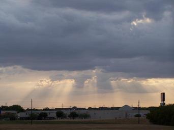 Keywords: heavens window light clouds city urban suburban night dusk rays sun cloudscape