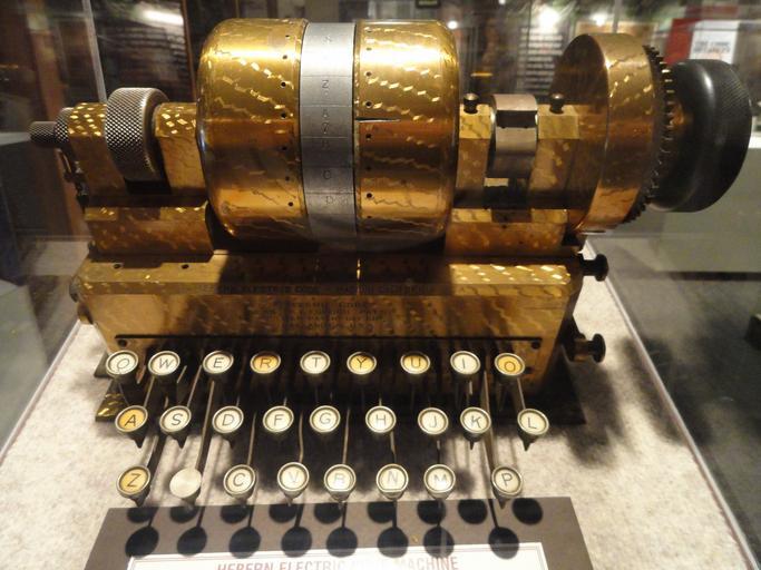 Keywords: Hebern Electric Code Machine, c. 1918, a single rotor machine made by Edward H. Hebern - National Cryptologic Museum - DSC07686.JPG en Exhibit in the National Cryptologic Museum Fort Meade Maryland USA All items in this museum are unclassified; items created by the United States Government are not subject to copyright restrictions 2013-03-29 09 55 32 own Daderot cc-zero Uploaded with UploadWizard Rotor machines in the National Cryptologic Museum |