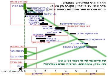 Keywords: Hebrew Human Evolution 01.svg en A timeline of hominid species in Hebrew own H sapiens 2009-10-01 Phylogenetic trees of humans
