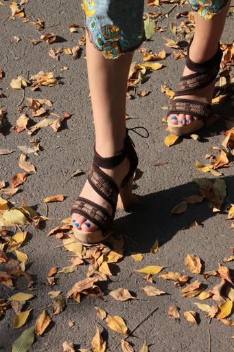 Keywords: heels high hot leaves park sexy walking woman yellow autumn people