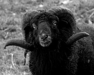 Keywords: heidschnucke sheep head bock male face livestock horns black horned portrait wild animal animal world wildlife photography animal portrait
