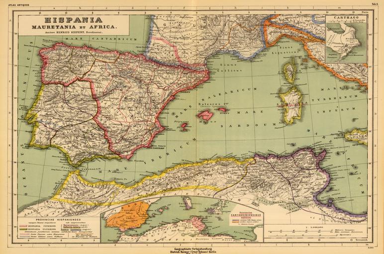Keywords: Heinrich Kiepert. Hispania, Mauretania et Africa.jpg Hispania Mauretania et Africa with Carthago with Provinciae Carthaginiensibus subditae Auctore Henrico Kiepert Berolinensi Geographische Verlagshandlung Dietrich Reimer Ernst Vohsen Berlin Wilhemlstr 29 X 1901 1903 http //www davidrumsey com/ 1903 Creator Heinrich Kiepert PD-old-100 Atlas antiquus by Heinrich Kiepert David Rumsey Historical Map Collection Old maps of Spain Old maps of Tunisia Old maps of Algeria Old maps of Morroco Old maps of Africa |