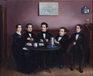 Keywords: Heinrich Pommerencke - Die Teegesellschaft.jpg oil canvas cm 60 2 73 8 object history credit line Unten links signiert und datiert accession number http //www reiss-sohn de/frame_buch php page 13 lang deu Reiss Sohn PD-Art-100 Heinrich Pommerencke Group portrait paintings Tea drinking in art 1846 paintings
