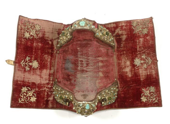 | Keywords: Helbild, ovansida, Bethlen Gabor - Livrustkammaren - 56776.tif Sadel av läder sitslängd 270 mm klädd med röd sammet rektangulära kappor fodrade och kantade med brunt skinn I hörnen och på mitten av kapporna samt på bakbommens insida broderad dekor i plattsöm med guldtråd i form av blommor på stjälk med blad <br/><br/>Bommarna smala frambommen h 145 mm bakbommen h 125 mm på utsidan klädda med förgyllt genombrutet silverbleck med yttäckande graverat rankmönster och infattade stenar turkoser av oregelbunden form På båda bommarna dessutom vardera fem stora planslipade gröna stenar 2 sexsidiga och 2 åttsidiga 1 stor sjusidig sten i mitten I silverplåten inslagen tughra Baktill krampa för ryggstycke <br/><br/>Bom överklädd med läder rektangulära hål för stigläder fyra stroppar av vitt läder för sadelgjord original caption helbild ovansida - LRK 9043 Bethlen Gabor<br/> Nyckelord Sammet Guldtråd Stormaktstiden Röd Bomsadel Blommor Broderad Föremålsbild early other date century 17 turquoise - silver - velvet Färg röd material sammet - leather - gold thread size mm 510 LRK Gabor Bethlen av Iktár furste av Siebenbürgen Kristina av Sverige Gustav II Adolf av Sverige The Arts of Islam 1976 Livrustkammarens basutställning 1978 Gustav II Adolf 350 år efter Lützen 1982-1984 Islamiskt i de kungliga samlingarna 1984 Orientalisk textilkonst Basutställning tughra Turkiet tughra Turkiet place of origin original filename lm_dig1291 45578 inventory number LRK 9043 56776 CC-BY-SA Göran Schmidt <gallery caption Different images of same object > File Detalj Bethlen Gabor - Livrustkammaren - 56775 tif File Detalj Bethlen Gabor - Livrustkammaren - 39656 tif File Detalj Bethlen Gabor - Livrustkammaren - 31096 tif File Helbild undersida Bethlen Gabor - Livrustkammaren - 48215 tif File Detalj Bethlen Gabor - Livrustkammaren - 5411 tif File Bomsadel Bethlen Gabor - Livrustkammaren - 52387 tif File Detalj Bethlen Gabor - Livrustkammaren - 31097 tif File Detalj Bethlen Gabor - Livrustkammaren - 22535 tif File Detalj Bethlen Gabor - Livrustkammaren - 82457 tif File Detalj Bethlen Gabor - Livrustkammaren - 39657 tif File Detalj Bethlen Gabor - Livrustkammaren - 13972 tif File Detalj Bethlen Gabor - Livrustkammaren - 65336 tif File Helbild Bethlen Gabor - Livrustkammaren - 48214 tif File Helbild Bethlen Gabor - Livrustkammaren - 73898 tif </gallery> Göran Schmidt Sweden 1611-1718 Red Flowers in art Horse equipment Media contributed by LSH unmatched keyword Color images from Livrustkammaren Horse tack images from Livrustkammaren Media contributed by LSH 2013-10 |