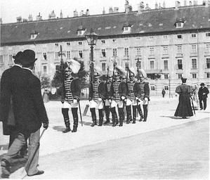 | Keywords: Heldenplatz 1900.JPG So-called Trabantenleibgarde marching off after their duty at the Heldenplatz Scanned from book Das k u k Photoalbum by Franz Hubmann ~ 1900 Beer Image is in public domain due to age Leopoldinischer Trakt Historic images of Heldenplatz Vienna Historical images of Innere Stadt Vienna PD-old Military marches |
