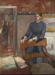 | Keywords: Helene Rouart in her Father's Study.jpg Artwork Creator Edgar Degas mld A portrait of a young woman standing behind a chair by a desk piled with papers Standing on the desk is a tall glass cabinet with an Egyptian mummy case or similar artifact inside ~ 1886 oil canvas Size cm 162 5 121 Institution National Gallery London http //www nationalgallery org uk/visiting/floorplans/level-2/room-46 Room 46 accession number NG6469 object history exhibition history credit line Bought 1981 Henri Rouart 1 http //pic13 nipic com/20110330/2531170_083433543331_2 jpg nipic com 2 http //www nationalgallery org uk/paintings/hilaire-germain-edgar-degas-helene-rouart-in-her-fathers-study/ /key-facts National Gallery image dezoomified image uploaded without further processing <gallery> </gallery> PD-old-auto 1917 PD-US Uploaded with UploadWizard Portrait paintings by Edgar Degas Henri Rouart Paintings by Edgar Degas in the National Gallery London Portrait paintings of women 1880s portrait paintings |
