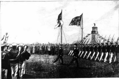| Keywords: Helgoland-Parade.jpg Parade zur Abtretung Helgolands an Deutschland Text auf dem Bild Die Abtretung Helgolands an Deutschland Der Parademarsch der Marinetruppen vor dem Kaiser und den aufgehei ßten - Flaggen am 10 August 1890 Originalzeichnung von A Kircher formale Bemerkung Repro Region Deutschland - Helgoland Quelle Der Bildbestand der http //www stub bildarchiv-dkg uni-frankfurt de/dfg-projekt/Bildprojekt/frames/hauptframe html Deutschen Kolonialgesellschaft in der Stadt- und Universitätsbibliothek Frankfurt am Main Hinweis Einige der vom Kolonialen Bildarchiv in Frankfurt a Main http //www stub bildarchiv-dkg uni-frankfurt de/dfg-projekt/Default htm veröffentlichten Bilder wurden von Mitarbeitern des Bildarchivs nachbearbeitet oder dort erstveröffentlicht Eine Weiterverwendung ist unter der Auflage einer deutlichen Quellenangabe gestattet first upload in de wikipedia on 14 35 11 Feb 2004 by Head PD-old Historical images of Heligoland Parades in unidentified countries 10 August 1890 Images from Koloniales Bildarchiv Goose step |