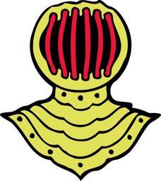 Keywords: helmet medieval armor metal protection protected shoulders head covering bars yellow red