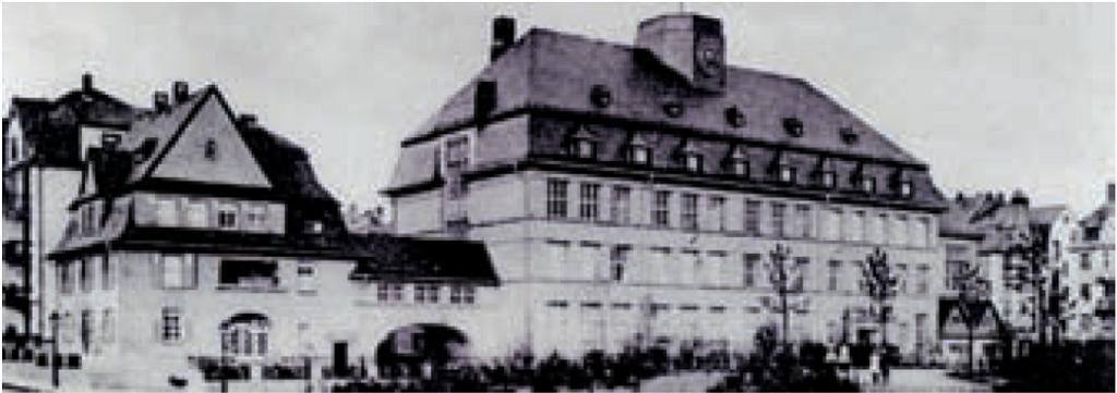 Keywords: Helmholtzschule frankfurt hesse germany 1912.png de Foto anlässlich der Einweihung der Helmholtzschule am 16 April 1912 Frankfurt am Main Hessen Deutschland en Picture on the occasion of the inauguration of Helmholtzschule in Frankfurt am Main Hesse Germany on 16 April 1912 2012-02-02 Festschrift der Helmholtzschule zum 100 Jubiläum 1912 “2012 unbekannt / unknown The picture of 1912 shows the front of the Helmholtzschule as can be seen from Habsburgerallee The left building was used by the school's principal and the beadle On its second floor school building and principal's home were connected by a housed bridge Principal and beadle were able to use this building until 4 Oct 1943 when a bombardment during WWII destroyed bridge building and else After war a wooden pavillion was erected instead to house two classrooms temporarily The pavillion lasted until 1970/71 It was replaced by today's gym which was built in 1971/72 Das Foto aus dem Jahr 1912 zeigt die Helmholtzschule am 16 April 1912 als Realschule für Knaben eingeweiht von der Habsburgerallee aus Das linke Haus war das Dienstgebäude des Schuldirektors und des Pedells in dem beide auch wohnten In der ersten Etage war es durch einen komplett geschlossenen à bergang mit dem Schulhaus verbunden Direktor und Pedell konnten das Gebäude bis zum 4 Oktober 1943 nutzen Während eines Bombenangriffs wurde es zusammen mit dem à bergang und weiteren Gebäudeteilen zerstört und in den Nachkriegsjahren durch einen behelfsmäßigen Pavillon aus Holz für zwei Unterrichtsräume ersetzt der bis 1970/71 genutzt wurde 1971/72 entstand auf dem Areal die heutige Einfeld-Turnhalle PD-old Buildings in Frankfurt-Ostend Helmholtzschule |