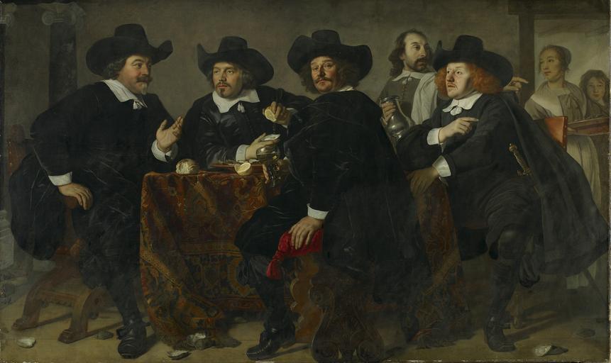 | Keywords: Helst2.jpg Artwork creator Bartholomeus van der Helst title Four aldermen of the Kloveniersdoelen in Amsterdam 1655 De overlieden van de Kloveniersdoelen 1655 1655 Oil on canvas cm 171 283 Amsterdam Museum The persons portrayed are from left to right aldermen and contemporaries Cornelis Jan Witsen Roelof Bicker Simon van Hoorn Gerrit Reynst langswitch op een stoel on a chair object history ProvenanceEvent 1655 transfer Kloveniersdoelen Singel Amsterdam < 1718 transfer City Hall Dam Amsterdam ProvenanceEvent 1899-1926 lent Rijksmuseum Amsterdam Amsterdam City of Amsterdam ProvenanceEvent unknown acquisition Amsterdams Historisch Museum inv no SA 2101 Amsterdam Rijksmuseum en wikipedia Риколай Путин SA 2101 Other versions PD-US PD-old-100 original upload log page en wikipedia Helst2 jpg 2007-07-19 23 35 Neddyseagoon 850×496× 114363 bytes http //cgfa sunsite dk/h/p-helst2 htm People of Amsterdam Bicker van Swieten Bartholomeus van der Helst Portrait paintings in the Amsterdam Museum Militia paintings 17th-century oil on canvas paintings in the Netherlands People in rooms in art Portraits with table carpets Portrait paintings of men wearing hats Black clothing in art male 1655 paintings Group portraits with 7 persons Amsterdam in the 1650s |
