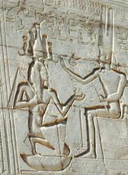 | Keywords: HemhemCrownRamses.jpg en Ramses II wearing the atef crown while receiving a long life from Amun de Ramses II mit der Atef-Krone während er von Amun ein langes Leben empfängt own InaKoys 2009-02-17 Ramesseum Luxor Reliefs of Ramses II Amun-Ra Ramesseum |