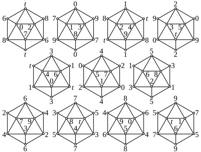 Keywords: Hemi-icosahedron.svg The eleven hemi-icosahedra Own 2007-04-01 User Stannered Release to PD Coloured version Created with Inkscape Tilings-db-temp Hemi-icosahedron References Diagram generated from one found in H S M Coxeter A Symmetrical Arrangement of Eleven Hemi-Icosahedra Annals of Discrete Mathematics 20 1984 pp 103-114 |