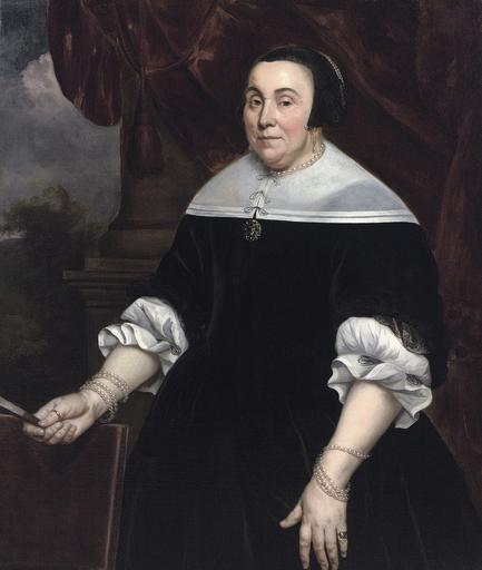 | Keywords: Hendrick Berckman - Portrait of Anna van Gelder (1614-1685).jpg Artwork creator Hendrick Berckman Anna van Gelder third wife of Michiel de Ruyter three-quarter-length in a black dress with a white collar and cuffs a black headdress standing before a curtain and holding a fan in her hand 1668 oil on canvas portrait of male Michiel de Ruyter 1607-1676 Hendrick Berckman - Portrait of Michiel de Ruyter 1607-1676 jpg signed HBerckmans Fet 1668 cm113 6 94 5 http //www christies com/LotFinder/lot_details aspx from salesummary intObjectID 5305459 sid 7519519a-6cfd-491d-9a68-3689ef77a4d6 Christie's PD-old-100 Hendrick Berckman 17th-century portrait paintings location missing 1668 Michiel de Ruyter 1668 oil on canvas paintings Portrait 1668 portrait paintings 17th-century oil portraits of standing women at three-quarter length 1668 Females with black dresses in art 1668 Females with pearl bracelets in art 1668 Females with pearl necklaces in art 1668 Columns in portrait paintings 1668 Pendant portraits 1668 Drapery in portrait paintings 1668 Portraits with fans 1668 Three-quarter view painted portraits of women facing left |
