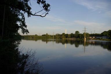 Keywords: Hengsteysee 006.JPG Hengsteysee östlich der Syburger Ruhrbrücke own Janericloebe 2010-07 Hengsteysee Ruhr at Hagen Powerline towers in Germany