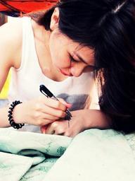 Keywords: henna drawing girl portrait hand kinu