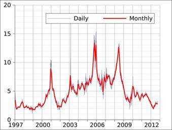 | Keywords: Henry hub NG prices.svg en Y-axis Dollars per MMBTU 1 MMBTU of natural gas equals approx 28¼ cubic meter according to en British thermal unit X-axis year Previously Data from the New Mexico Institute of Mining and Technology Prices are nominal not adjusted for inflation http //octane nmt edu/gotech/Marketplace/Prices aspx Updated Image data now from the EIA site as they are now very comprehensive Exactly how they define the monthly price is unclear but the excel sheet seems to show the 2nd or 3rd week contract expiration but that might be wrong http //www eia gov/dnav/ng/hist/rngwhhdD htm Image created with Gnumeric 1 10 14 own Theanphibian 2009-06-04 Natural gas statistics |