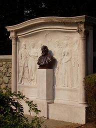 | Keywords: Henry Wadsworth Longfellow memorial, Cambridge, MA - oblique view.JPG Henry Wadsworth Longfellow Memorial by sculptor Daniel Chester French 1850-1931 Cambridge Massachusetts USA A bust of Longfellow is in the middle To the left are bas relief sculptures of Miles Standish the angel Sandalphon from his Birds of Passage and The Village Blacksmith To the right are The Spanish Student Evangeline holding her Bible and Rosary and Hiawatha This sculpture is now in the public domain as its author died more than 70 years ago Sculptor Daniel Chester French 1850-1931 ; photography by me Daderot Sculpture created in 1913; photograph taken in September 2007 Sculptor Daniel Chester French 1850-1931 ; photography by me Daderot Author died more than 70 years ago - public domain PD-old Henry Wadsworth Longfellow Memorial |