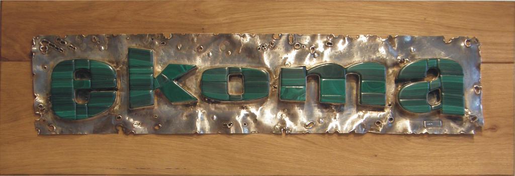 | Keywords: Henryk Jan Dominiak - Malachitowy znak nr 1 - 2009 r. - srebro próby Ag 0,925 - 0,928 + kamień półszlachetny malachit - łączna masa 870,00 g - znak wytwórcy - połączone litery AH + cechy charakterystyczne.png pl Henryk Jan Dominiak artysta rzeźbiarz złotnik grafik malarz przedsiębiorca projektant jubiler kreator form ze złota i srebra bonsaista - Malachitowy znak nr 1 - 30 10 2009 r - srebro próby Ag 0 925 - 0 928 + kamienie półszlachetne malachit - łączna waga 870 00 g - oznaczony znakiem wytwórcy połączone litery AH posiadający cechy charakterystyczne - jest w kształcie tarczy herbowej blacha na której umieszczono pięć liter tworzących napis ekoma każda z liter składa się ze srebrnej oprawy która została wypełniona zielonymi kamieniami - malachitem z Uralu Badanie metodą przybliżoną na kamieniu probierczym i analizy chemicznej wykazało próbę blacha i oprawy kamieni Ag 0 925 - 0 928 Wyrób - wraz ze znakiem twórcy - został ocechowany polskimi cechami probierczymi dla srebra próby Ag 0 925 oraz godełkiem dla srebra na blasze łączącej litery - pod literą a Świadectwo badania - Nr 516/2009 Chorzów z dnia 2009-10-30 wystawił Obwodowy Urząd Probierczy w Chorzowie Właścicielem dzieła jest Małgorzata Bigoszewska reprezentująca firmę Ekoma Tychy Znak - 5 liter - stanowi logo Firmy Biuro Rachunkowe Ekoma Małgorzata Bigoszewska own Arhen-dominiak 10 11 2009 Henryk Jan Dominiak Biuro Rachunkowe Ekoma Małgorzata Bigoszewska Art objects of malachite Silver signs |
