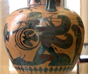 | Keywords: Herakles Geryon Cdm Paris 202.jpg Inscription Painter Heracles fighting with Geryon dying Orthrus and Eurytion on the ground Chalcidian black-figured amphora from South Italy ca 540 BC Combat d'Héraclès contre Géryon Orthos et Eurytion gisent au sol Amphore chalcidienne à figures noires d'Italie du Sud v 540 av J -C H 41 cm 16 in Museum Cabinet des Médailles CVA France 7 III E pl 24 num 1 “4 pl 25 object history credit line Feoni Magnoncourt and Luynes Collection; gift 1862 accession number De Ridder n 202 User Bibi Saint-Pol own work 2007-05-25 other versions <gallery> Image Cattle of Geryon Cdm Paris 202 jpg Other side </gallery> Cabinet des médailles Paris De Ridder 202 |