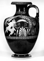 | Keywords: Herakles Painter - Red-Figure "Kerch-Style" Hydria - Walters 48263 - Left Side.jpg The amorous interactions of humans and immortals achieve a light-hearted almost dance-like quality on this hydria or water-jug Hermes in the center pursues a youth towards the right with Eros floating above them On the left a satyr advances from below towards a maiden who attempts to flee ca 360 BC Classical terracotta cm 31 3 19 9 h x diam ; at handles cm 25 1 w accession number 48 263 31250 Arthur Sambon Paris 1920 mode of acquisition unknown no 20 Henry Walters Baltimore 1926 mode of acquisition unknown Walters Art Museum Henry Walters Acquired by Henry Walters 1926 Things With Wings Mythological Figures in Ancient Greek Art The Walters Art Museum Baltimore 2005-2006 Things With Wings Mythological Figures in Ancient Greek Art Ward Museum Salisbury 2009 place of origin Athens Greece Walters Art Museum license Ancient Greek red-figure pottery in the Walters Art Museum Herakles Painter Media contributed by the Walters Art Museum needs category review |