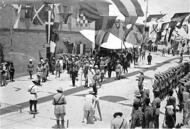 | Keywords: Herbert Samuel walking into Jaffa.jpg en Sir Herbert Samuel walking into Jaffa 1920 LC-DIG-ppmsca-13291-00158 digital file from original page 51 no 158 Information field Notes Arrangement Photographs arranged chronologically Photographs were created by the photographers of the American Colony Photo Department located in Jerusalem Founded in the late 1890s by Elijah Meyers the photo agency was headed during its heyday ca 1903-1933 by Lewis Larsson whose staff photographers included Erik Lind Lars Lind Furman Baldwin and G Eric Matson It transitioned into the Matson Photo Service around 1940 with photography by Matson Hanna Safieh Joseph H Giries and others John D Whiting contributed periodically to the work of both agencies For more information see http //hdl loc gov/loc pnp/pp matpc and http //www loc gov/rr/print/coll/629_whiting html Inscription on inside cover With all good wishes to dear Grace John from Edith Eric Album was probably compiled by G Eric and Edith Matson as a gift to John and Grace Whiting Album unpaginated album page numbers supplied by Library staff Pages 66 77 83 103 105 107-111 are blank LOT title devised by Library staff John D Whiting's diaries correspondence and other materials are located in the Library of Congress Manuscript Division Papers of John D Whiting Forms part of Visual materials from the papers of John D Whiting Library of Congress Transfer; Manuscript Division; 2006; DLC/PP-2006 051 28 html LOC-image ppmsca 13291 http //www loc gov/pictures/item/2007675259/ World War I and the British Mandate in Palestine 1917-1926 html Information field Direct link http //memory loc gov/phpdata/pageturner php type contactminor cmIMG1 /pnp/ppmsca/13200/13291/00158t gif agg ppmsca item 13291 caption 158 memory loc gov html American Colony Jerusalem Photo Department photographer Information field Related Names Whiting John D John David 1882-1951 photographer Larsson Lewis photographer Matson G Eric GÀstgifvar Eric 1888-1977 photographer html 1920 PD-Matson Herbert Samuel British Mandate of Palestine Black and white photographs of Israel World War I and the British Mandate in Palestine ppmsca 13291 |
