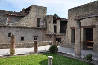 | Keywords: outdoor architecture ruins building "Located in the shadow of Mount Vesuvius, Herculaneum (Italian: Ercolano) was an ancient Roman town destroyed by volcanic pyroclastic flows in 79 AD. Its ruins are located in the commune of Ercolano, Campania, Italy. It is most famous for having been lost, along with Pompeii, Stabiae, Oplontis and the neighborhood of Monte Bursaccio in Boscoreale, in the eruption of Mount Vesuvius in AD 79 that buried it in superheated pyroclastic material. It is also famous as one of the few ancient cities that can now be seen in almost its original splendor; unlike Pompeii, it was mainly affected by pyroclastic flows, thus preserving the wooden objects such as roof tops, building beams, beds, doors, and even food. Moreover, Herculaneum was a wealthier town than Pompeii, possessing an extraordinary density of fine houses, and far more lavish use of colored marble cladding. The discovery in recent years of some 300 skeletons along the sea shore came as a surprise, as it had been assumed that the town had been evacuated." ~Wikipedia "Located in the shadow of Mount Vesuvius, Herculaneum (Italian: Ercolano) was an ancient Roman town destroyed by volcanic pyroclastic flows in 79 AD. Its ruins are located in the commune of Ercolano, Campania, Italy. It is most famous for having been lost, along with Pompeii, Stabiae, Oplontis and the neighborhood of Monte Bursaccio in Boscoreale, in the eruption of Mount Vesuvius in AD 79 that buried it in superheated pyroclastic material. It is also famous as one of the few ancient cities that can now be seen in almost its original splendor; unlike Pompeii, it was mainly affected by pyroclastic flows, thus preserving the wooden objects such as roof tops, building beams, beds, doors, and even food. Moreover, Herculaneum was a wealthier town than Pompeii, possessing an extraordinary density of fine houses, and far more lavish use of colored marble cladding. The discovery in recent years of some 300 skeletons along the sea shore came as a surprise, as it had been assumed that the town had been evacuated." ~Wikipedia |