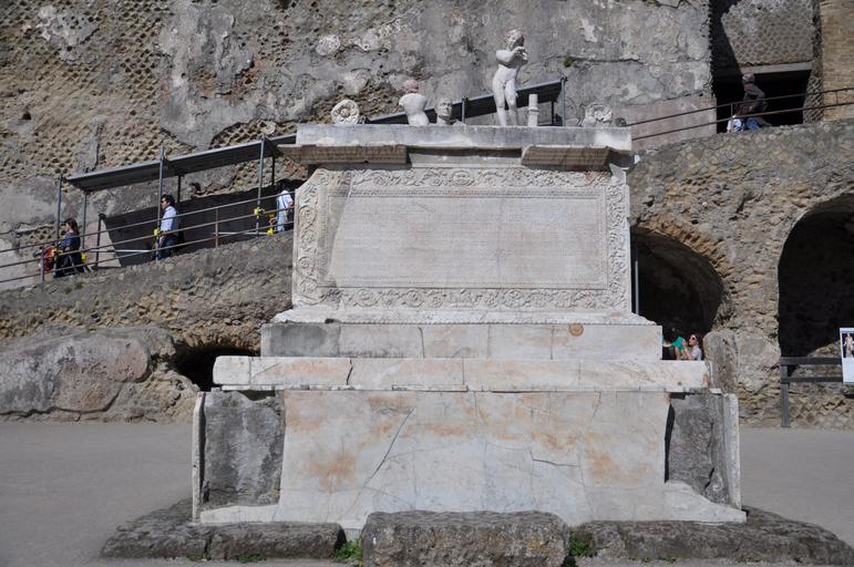 | Keywords: stonework outdoor architecture "Located in the shadow of Mount Vesuvius, Herculaneum (Italian: Ercolano) was an ancient Roman town destroyed by volcanic pyroclastic flows in 79 AD. Its ruins are located in the commune of Ercolano, Campania, Italy. It is most famous for having been lost, along with Pompeii, Stabiae, Oplontis and the neighborhood of Monte Bursaccio in Boscoreale, in the eruption of Mount Vesuvius in AD 79 that buried it in superheated pyroclastic material. It is also famous as one of the few ancient cities that can now be seen in almost its original splendor; unlike Pompeii, it was mainly affected by pyroclastic flows, thus preserving the wooden objects such as roof tops, building beams, beds, doors, and even food. Moreover, Herculaneum was a wealthier town than Pompeii, possessing an extraordinary density of fine houses, and far more lavish use of colored marble cladding. The discovery in recent years of some 300 skeletons along the sea shore came as a surprise, as it had been assumed that the town had been evacuated." ~Wikipedia "Located in the shadow of Mount Vesuvius, Herculaneum (Italian: Ercolano) was an ancient Roman town destroyed by volcanic pyroclastic flows in 79 AD. Its ruins are located in the commune of Ercolano, Campania, Italy. It is most famous for having been lost, along with Pompeii, Stabiae, Oplontis and the neighborhood of Monte Bursaccio in Boscoreale, in the eruption of Mount Vesuvius in AD 79 that buried it in superheated pyroclastic material. It is also famous as one of the few ancient cities that can now be seen in almost its original splendor; unlike Pompeii, it was mainly affected by pyroclastic flows, thus preserving the wooden objects such as roof tops, building beams, beds, doors, and even food. Moreover, Herculaneum was a wealthier town than Pompeii, possessing an extraordinary density of fine houses, and far more lavish use of colored marble cladding. The discovery in recent years of some 300 skeletons along the sea shore came as a surprise, as it had been assumed that the town had been evacuated." ~Wikipedia |