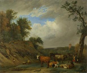 | Keywords: Herders met hun vee Rijksmuseum SK-A-318.jpeg nl Herders met hun vee Onder een oude boom geeft een vrouw haar kind de borst achter haar een herder met een doedelzak Bij de boom zit een hond Voor hun en links op de helling van een heuvel grazen en rusten koeien schapen geiten een ezel en een paard drager Height cm 81 drager Width cm 97 5 exhibition history 2007-2007 Rembrandt and the Golden Age of Dutch Art Treasures from the Rijksmuseum - III - B Portland Oregon 2007-2007 Rembrandt and the Golden Age of Dutch Art Treasures from the Rijksmuseum - II - B Phoenix Arizona 2006-2007 Rembrandt and the Golden Age of Dutch Art Treasures from the Rijksmuseum - I - B Dayton Ohio Institution Rijksmuseum Technique oil canvas object history Acquisition 1808 object type PD-US PD-old-100 Data and photography rights All data and all images made available through the API are either in the public domain or are subject to a CC0 license https //www rijksmuseum nl/en/api/terms-and-conditions-of-use cc-zero place of creation http //www rijksmuseum nl/collectie/SK-A-318 Herders met hun vee Q17320077 Uploaded with GWToolset Herders met hun vee Rijksmuseum SK-A-318 http //www rijksmuseum nl/media/assets/SK-A-318 Images uploaded by Fæ Images from the Rijksmuseum Paintings by Paulus Potter in the Rijksmuseum Amsterdam Paintings after Paulus Potter |