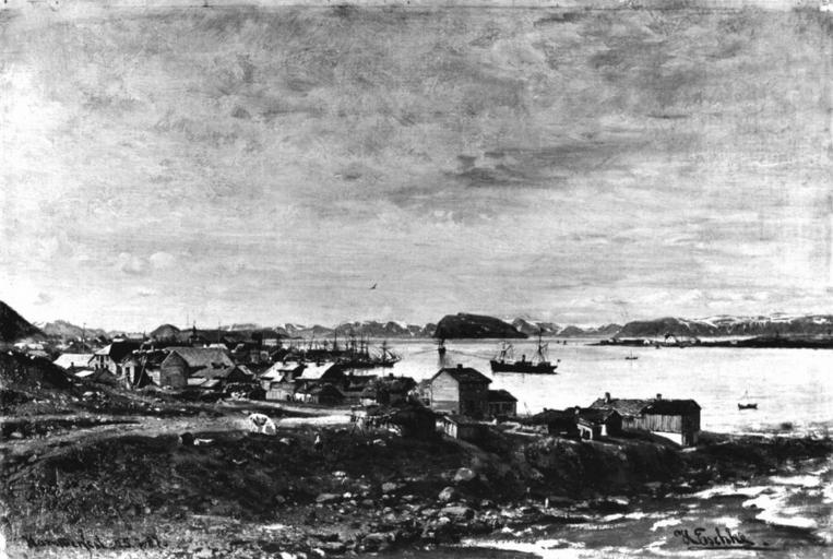 | Keywords: Hermann Eschke - Ansicht von Hammerfest.jpg Artwork Creator Hermann Eschke Ansicht von Hammerfest 1887-07-25 oil canvas cm 30 48 5 LangSwitch verschollen missing object history früherer Verwalter Berlin Staatliche Museen Nationalgalerie alte Inventar-Nr ohne Nummer Zugang Vermächtnis 1916 mit der Sammlung Freund übernommen <br/>Auslagerungsort Berlin Volksgerichtshof Zugang Leihgabe vor 1941/1943 credit line Signatur Datierung H Eschke Hammerfest 25 87 Anbringungsort unten accession number 02521410 PD-old-100 Hermann Eschke Historical images of Hammerfest town Lost paintings 1887 paintings Images from Bildarchiv Foto Marburg Black and white reproductions of paintings in color Paintings of norwegian villages 1887 oil on canvas paintings Hammerfest in art |