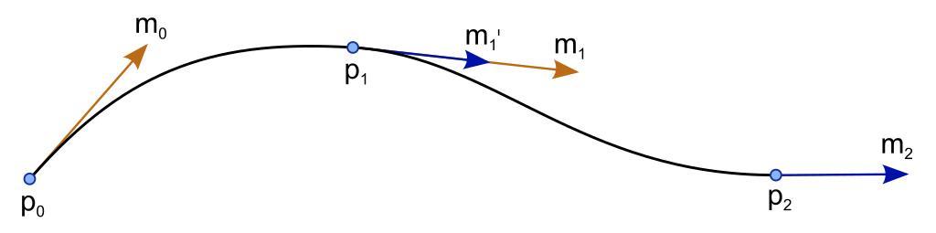 Keywords: Hermite spline 2-segments.svg en cubic hermite spline consisting of two segments Kubisch Hermitescher Spline bestehend aus zwei Segmenten Tangenten bestimmt mit der Formel für Catmull-Rom-Splines own Niabot 2010-11-01 Splines Charles Hermite |