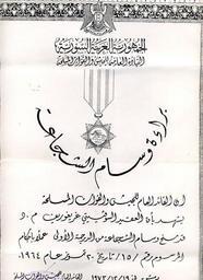 Keywords: Hero of Syria citation.jpg ar وصف مجموعات الجدارة البطل الجمهورية العربية السورية ---- en Hero of Syria citation issued to a Soviet militaryman who fought Isaelis Americans and joint NATO force of British French and Italian military components in the Middle East and thus has been considered to be an eligible candidate to receive the supreme Syrian award ---- ru аг адной лист на советского военнослужащего участника боевых действий на Ближнем Востоке Ге оя Си ийской А абской Республики http //ak-group ru/forum/attachment php attachmentid 30911 d 1268487029 Hero of Sirya citation 22px en President of Syria President of the Syrian Arab Republic President of the Syrian Arab Republic circa 1970 1980 s PD-Syria Orders decorations and medals of Syria Arab-Israeli conflict Documents of Syria Soviet experts in Arabic Armies |