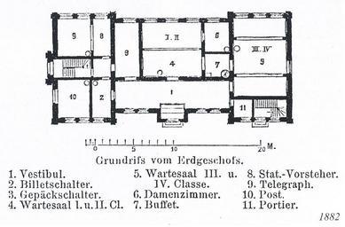 | Keywords: Hersfeld Bahnhof Grundriss.jpg Plan from ground floor of train station in Bad Hersfeld in 1882 Grundriss vom Erdgeschoss vom Bahnhof Bad Hersfeld aus dem Jahr 1882 arranged by 2micha 1882 Paul Rowald Out of copyright as author died more than 70 years ago picture is part of Image De Merian Hassiae 126 jpg PD-old Train station in Bad Hersfeld Floor plans of train stations |