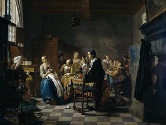 | Keywords: 'Het nieuwe lied' Rijksmuseum SK-A-1614.jpeg accession number SK-A-1614 Creator Jan Josef Horemans II credit line nl Interieur met een gezelschap rond de tafel links een jonge vrouw die een lied uit liedboek speelt op een klavecimbel Aan de tafel wordt thee gedronken twee mannen roken pijpen De vrouw links heeft een stoofje onder de voeten Op de achtergrond vergrijpt een oude man zich aan een jonge vrouw Rechts een scherm voor de schoorsteenmantel waaraan een jas en een hoed hangen Aan het plafond hangt een vogelkooi size cm 60 77 exhibition history JHoremans signature unknown ~ Langswitch op het deksel van het instrument on the lid of the instrument it Institution Rijksmuseum oil on panel object history ProvenanceEvent 1894-04-18 anonymous sale L Abelas Belgium Mueller Amsterdam 10 141 florins ProvenanceEvent 1894-05 acquisition LangSwitch das the au al het Rijksmuseum Amsterdam object type painting Potential derivatives exist check http //commons wikimedia org/w/index php search Rijksmuseum+SK-A-1614 this search PD-old-auto CC0 1792 place of creation SK-A-1614 240105 Langswitch Musicerend gezelschap in een interieur 'Musical company in an interior' cite book Het klavecimbel in de Nederlandse kunst tot 1800 Dijck Lucas van Koopman Ton Zutphen Walburg Pers 1987 978-90-6011-546-6 <br> cite book Les sujets de musique dans la peinture belge du XVIIIième siècle Mirimonde A P de Jaarboek van het Koninklijk Museum voor Schone Kunsten Antwerpen 1967 241 www rijksmuseum nl https //www rijksmuseum nl Home http //hdl handle net/10934/RM0001 COLLECT 7442 Info 'Het nieuwe lied' A New Tune Q17324394 Uploaded with GWToolset 'Het nieuwe lied' Rijksmuseum SK-A-1614 http //www rijksmuseum nl/media/assets/SK-A-1614 Images uploaded by Fæ Images from the Rijksmuseum Jan Josef Horemans II Paintings by Jan Josef Horemans II in the Rijksmuseum Amsterdam Horemans II Harpsichords in art |