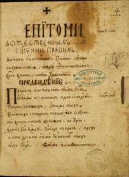 | Keywords: Hexabiblos - Constantine Harmenopoulos - 1706 - Moscow - first page.png en Front page of the Procheiron or Hexabiblos of Constantine Harmenopoulos 1320 - 1380/1385 Moscow 1706 edition by Daniel Matveev 1st translation in Russian from Byzantine Greek Hexabiblos was a Byzantine legal treatise of the 14th century that continued to be widely used in the Balkan lands throughout the later Ottoman Empire's presence At 1828 it was adopted by the newly founded Greek state as the state's civic code where it remained so until 1946 el Η αρχική σελίδα της του Προχείρου ή Εξάβιβλου του Κωνσταντίνου Αρμενό ουλου 1320 - 1380/1385 έκδοση του 1706 στην όσχα α ό τον Δανιήλ ατβίεβ μετάφραση στα νέα ελληνικά Η Εξάβιβλος ήταν μια Βυζαντινή νομική ραγματεία η ο οία συνέχισε να χρησιμο οιείται ευρέως στα Βαλκάνια κατά τη διάρκεια της μετέ ειτα Οθωμανικής αυτοκρατορίας Το 1828 το έργο αυτό υιοθετήθηκε ως ο νομικός κώδικας του νεοιδρυθέντος Ελληνικού κράτους ό ου και αρέμεινε σε ισχύ ως το 1946 ru Епитоми божественных и священных п авил бывшая от всечестнаго севаста и законох анителя и судии фессалоническаго господина Константина А менопола - 1706 - Даниил атвеев 1706 http //old stsl ru/manuscripts/medium php col 5 manuscript 192 pagefile 192-0001 Constantine Harmenopoulos original Daniel Matveev ДА ИИЛ АТВЕЕВ editor other versions Custom license marker 2015 02 15 PD-old-100-1923 Uploaded with UploadWizard Byzantine writers Law books Books in Russian |