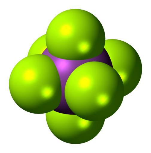 | Keywords: Hexafluoroantimonate anion 3D spacefill.png Space-filling model of the hexafluoroantimonate anion the super-stable ion formed by fluoroantimonic acid Colour code C8FA00 Yellow-green Fluorine F<br> AA5ABE Antimony Sb lilac<br> 2011-06-24 own DS Visualizer Jynto talk Ball-and-stick version cc-zero fluoroantimonic acid non-coordinating anions Images by Jynto Space-filling models | ||||