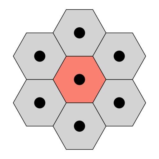 Keywords: Hexagonal connectivity.svg Hexagonal connectivity own 2006-07-13 MistWiz Order-3 hexagonal tiling Cellular automata neighborhoods