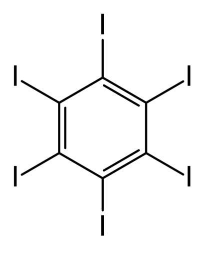 Keywords: Hexaiodobenzene.svg Strukturformel von Hexaiodbenzol Structure of hexaiodobenzene Own 2010-03-05 Sponk <span class signature-talk >talk</span> PD-chem Hexaiodobenzene