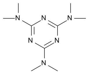 Keywords: Hexamethylmelamine.svg chemical structure of Hexamthylmelamine; Altretamine Die Strukturformel von Hexamthylmelamin; Altretamin Own 2009-05-27 User Kuebi Armin Kübelbeck Antineoplastic agents aminotriazines Tertiary amines