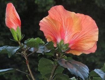 Keywords: hibiscus blossom bloom button mallow salmon beautiful