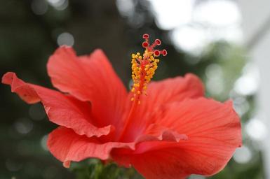 Keywords: hibiscus flower coral pink floral tropical summer plant blossom hawaii bloom exotic beautiful stamen nature
