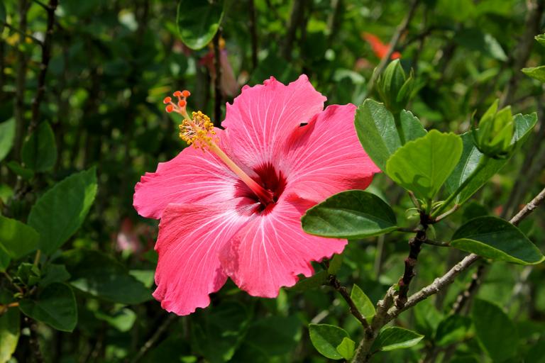 Keywords: hibiscus flower red natural on the branch botany flower in the garden flower in closeup
