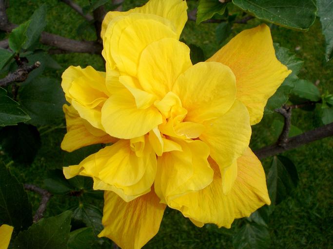 Keywords: hibiscus mallow marshmallow flower blossom bloom yellow