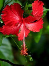Keywords: hibiscus red bloom flower plant nature floral green blossom petal blooming spring vibrant bud botany fresh leaf herbal foliage gorgeous