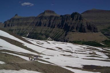 | Keywords: glacier national park glaciernationalpark logan pass loganpass trail hidden lake overlook hiddenlakeoverlook alpine snow mountains outdoor Visitors walking the trail from Logan Pass Visitor Center to Hidden Lake Overlook. The Garden Wall, Bishop's Cap, Mt. Pollock, and Mt. Piegan are all visible in the background. Photo: David Restivo, NPS Visitors walking the trail from Logan Pass Visitor Center to Hidden Lake Overlook. The Garden Wall, Bishop's Cap, Mt. Pollock, and Mt. Piegan are all visible in the background. Photo: David Restivo, NPS |