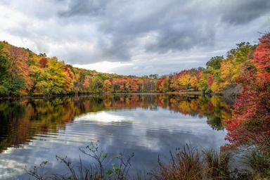 Keywords: hidden lake water sky clouds outdoor trees fall foliage