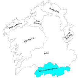 | Keywords: Hidrogalicia vertente meridional.svg gl Mapa hidrolóxico de Galicia sinalando a Vertente Meridional es Mapa hidrológico de Galicia señalando la Vertiente Meridional en Hidrologic map of Galicia Spain indicating the Meridional drainage basin own Iagocasabiell 2009 Hidrogalicia ES vertiente meridional svg Vertentes de Galicia |