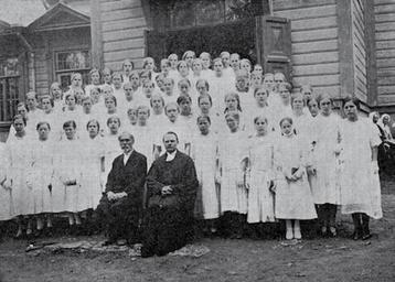 | Keywords: Hietamaki1910.jpg ru Конфи мация в ки хе п ихода Хиетамяки В цент е сидят кисте Иоанн Риккинен и пасто Йоханнес Сийтонен Е Л Александ ова Б аудзе В А Высоцкая Е А Пет ова «Исто ия финской Евангелическо-Люте анской Це кви Инге манландии» СПб 2012 ст 232 ISBN 978-5-904790-08-0 author 21 мая 1906 г PD-old Demolished churches in Leningrad Oblast Hietamäki Ingria |