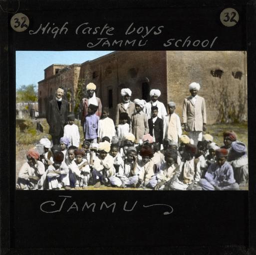 | Keywords: High Caste Boys Jammu School, Jammu, ca.1875-ca.1940 (imp-cswc-GB-237-CSWC47-LS10-032).jpg en <br> High Caste Boys Jammu School Jammu ca 1875-ca 1940 Group photograph of a class of high caste boys from Jammu school The boys are photographed outside and there is a red brick building in the background ; This belongs to a series of Church of Scotland Foreign Missions Committee lantern slides relating to Jammu City which is also known as the City of Temples A mission station occupied by Church of Scotland missionaries was founded here in the late 19th/early 20th century Jammu is also one of the three administrative divisions within Jammu and Kashmir the northernmost state in India Photographer Unknown Filename imp-cswc-GB-237-CSWC47-LS10-032 tif Coverage date 1875/1940 Part of collection International Mission Photography Archive ca 1860-ca 1960 Geographic subject region Jammu and Kashmir Type images Part of subcollection Photographs from the Centre for the Study of World Christianity University of Edinburgh U K ca 1900-ca 1940s Repository name Centre for the Study of World Christianity Archival file impaunpub_Volume7/1749 url Repository address The University of Edinburgh School of Divinity New College Mound Place Edinburgh EH1 2LX United Kingdom Geographic subject country India Format aacr2 1 lantern slide 8 x 8 cm Geographic subject continent Asia Rights Contact the repository for details Part of series In the Temple City of Jammu LS10 Repository email divinity-CSWC ed ac uk Subject lcsh Keyword Children; Education; Social classes Date created 1875/1940 Publisher of the digital version University of Southern California Libraries Subject aat genre group portraits Format aat lantern slides Legacy record ID impa-m69300 Access conditions http //www ed ac uk/schools-departments/divinity/research/centres/world-christianity/collections-resources File GB 237 CSWC47/LS10/32 1875/1940 author http //digitallibrary usc edu/cdm/ref/collection/p15799coll123/id/64866 PD-old-70-1923 Magic lantern images Images from USC Digital Library uploaded by Fæ International Mission Photography Archive ca 1860-ca 1960 People of Jammu |
