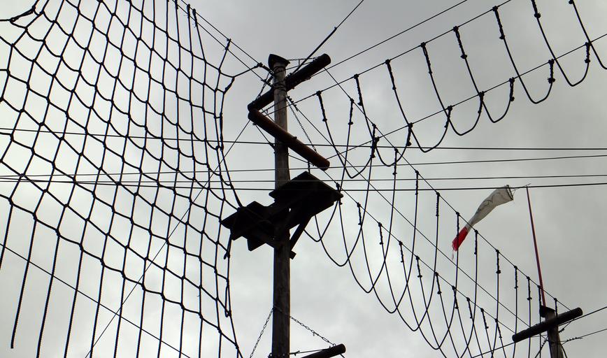 Keywords: high ropes course climbing garden climbing forest rope park dangerous head for heights forest ropes ropes course balance overcoming daring range of motion fun adventure voltage the rope team spirit
