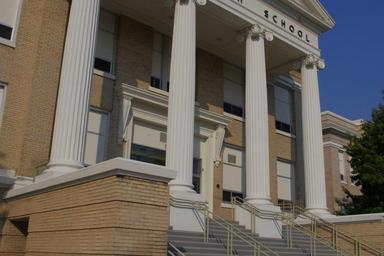Keywords: high school junior high school columns steps entrance arc architecture building education stairs exterior campus corinthian